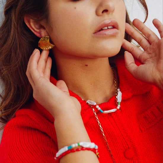 Om ervoor te zorgen dat uw 14-karaats vergulde Bonnie-sieraad zo lang mogelijk prachtig blijft glanzen, raden wij aan er extra voorzichtig mee om te gaan. Vermijd contact met water, parfum, lotions, zweet en hitte, aangezien deze de verguldlaag na verloop van tijd kunnen aantasten.