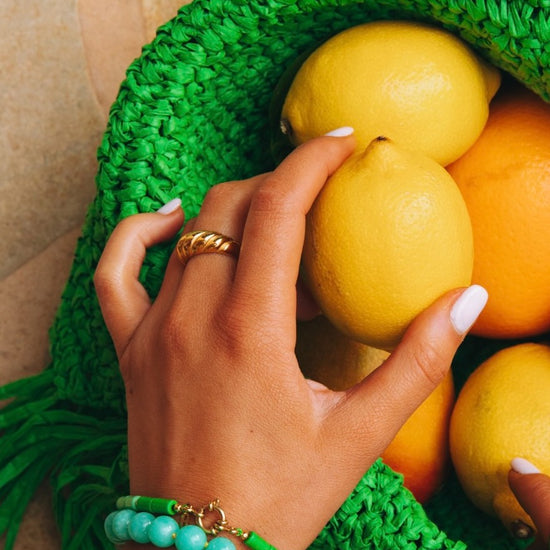 Om ervoor te zorgen dat uw 14-karaats vergulde Bonnie-sieraad zo lang mogelijk prachtig blijft glanzen, raden wij aan er extra voorzichtig mee om te gaan. Vermijd contact met water, parfum, lotions, zweet en hitte, aangezien deze de verguldlaag na verloop van tijd kunnen aantasten.
