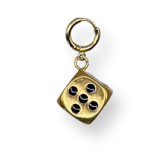 Een verguld kubusvormig bedeltje, een speelse, stijlvolle touch die karakter toevoegt.