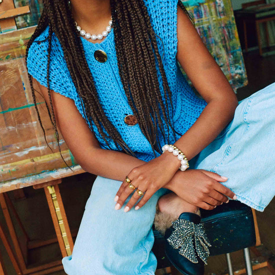 Om ervoor te zorgen dat uw 14-karaats vergulde Bonnie-sieraad zo lang mogelijk prachtig blijft glanzen, raden wij aan er extra voorzichtig mee om te gaan. Vermijd contact met water, parfum, lotions, zweet en hitte, aangezien deze de verguldlaag na verloop van tijd kunnen aantasten.