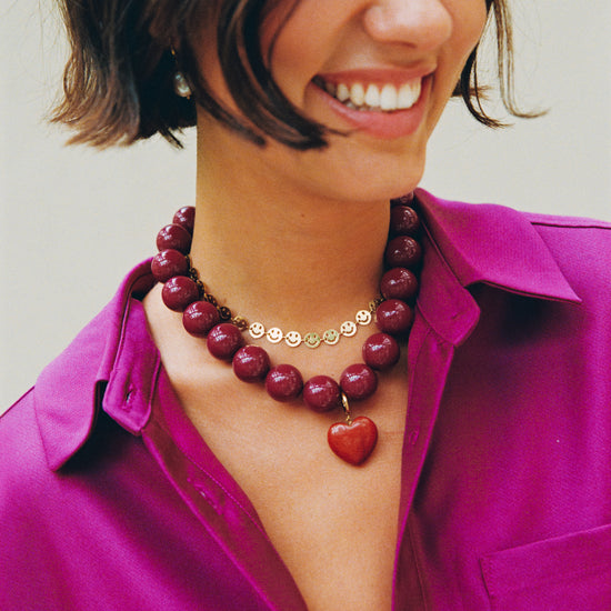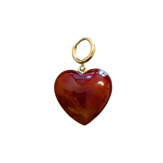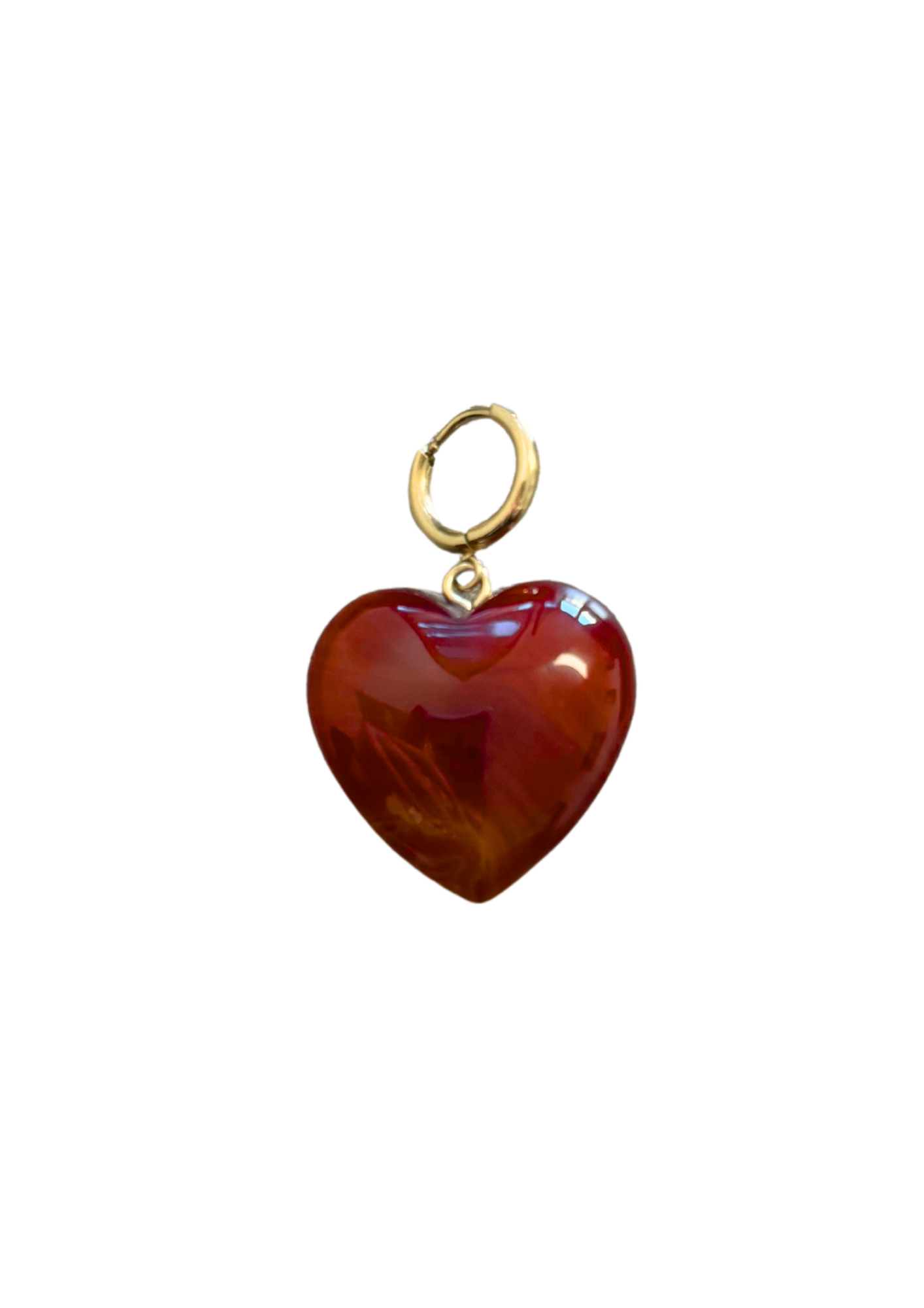 Een opvallend rood hartje met een glanzende gouden lus – levendig en vol liefde. Perfect om te combineren met andere bedeltjes of om los te dragen.