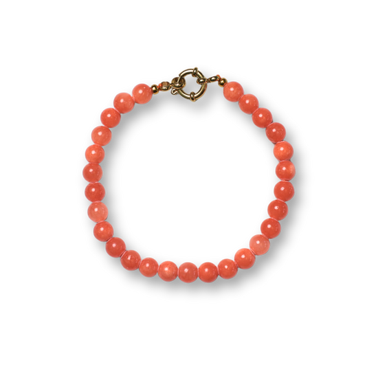 Zachte perzikkleurige jade kralen voor een minimalistische, warme look. Perfect om te combineren met gouden sieraden.