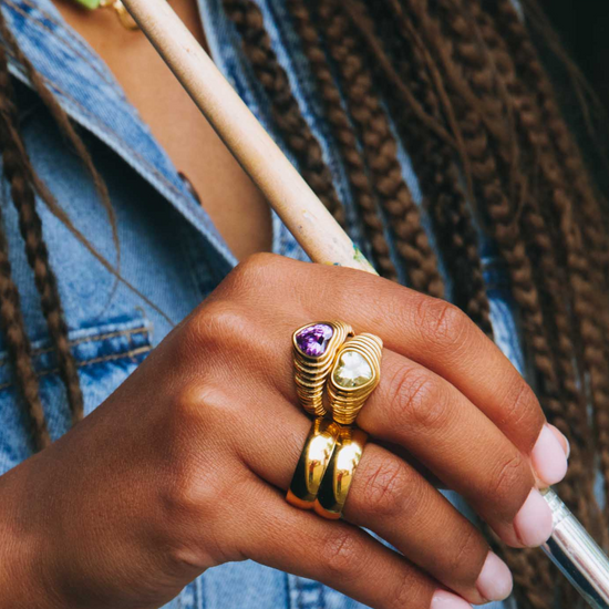 Maak kennis met onze hart ring met een paarse twist. Deze stunner is gemaakt van 18K verguld roestvrij staal. Kies je favoriete ring.