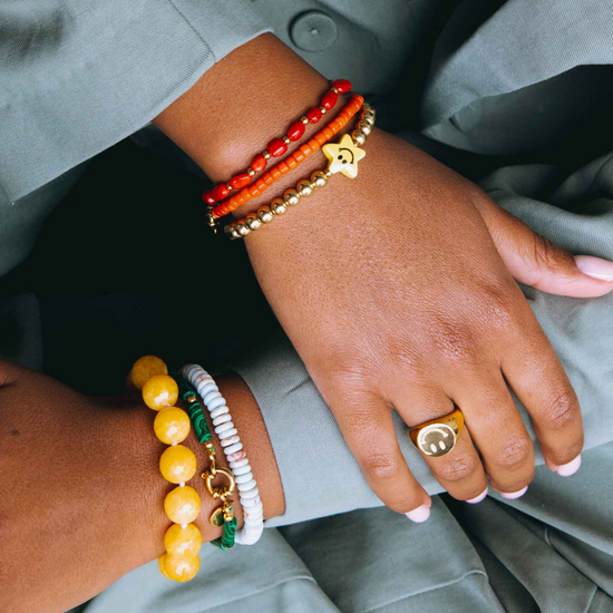 Om ervoor te zorgen dat uw 14-karaats vergulde Bonnie-sieraad zo lang mogelijk prachtig blijft glanzen, raden wij aan er extra voorzichtig mee om te gaan. Vermijd contact met water, parfum, lotions, zweet en hitte, aangezien deze de verguldlaag na verloop van tijd kunnen aantasten.