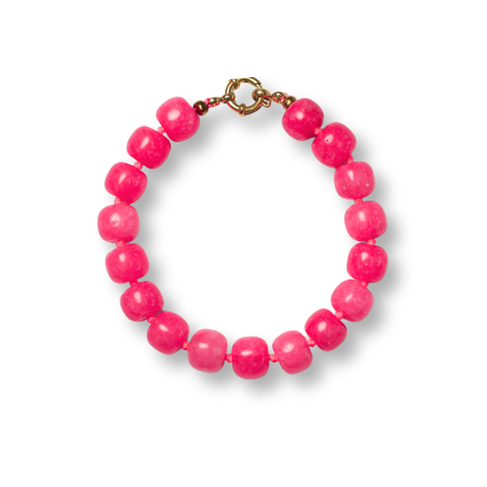Gladde neonkleurige jade kralen in een gedurfde, optimistische tint, klein maar onvergetelijk.