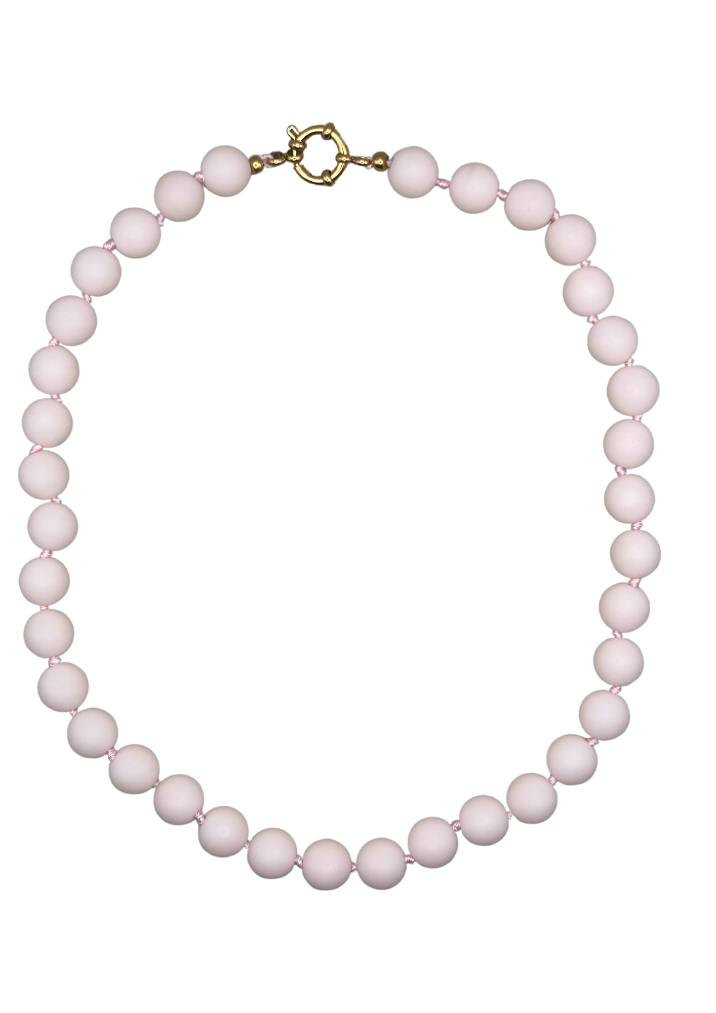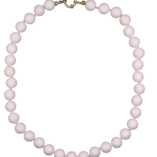 Een van onze charmante ontwerpen! Dit sieraad is handgemaakt en gemaakt van lichtroze glazen rozenkwartskralen.