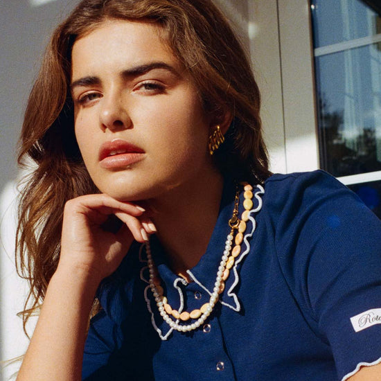 Om ervoor te zorgen dat uw 14-karaats vergulde Bonnie-sieraad zo lang mogelijk prachtig blijft glanzen, raden wij aan er extra voorzichtig mee om te gaan. Vermijd contact met water, parfum, lotions, zweet en hitte, aangezien deze de verguldlaag na verloop van tijd kunnen aantasten.