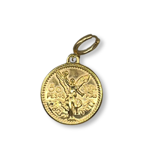 A detailed vintage-style coin in a bright gold tone. This larger version brings heritage flair to any chain or hoop.